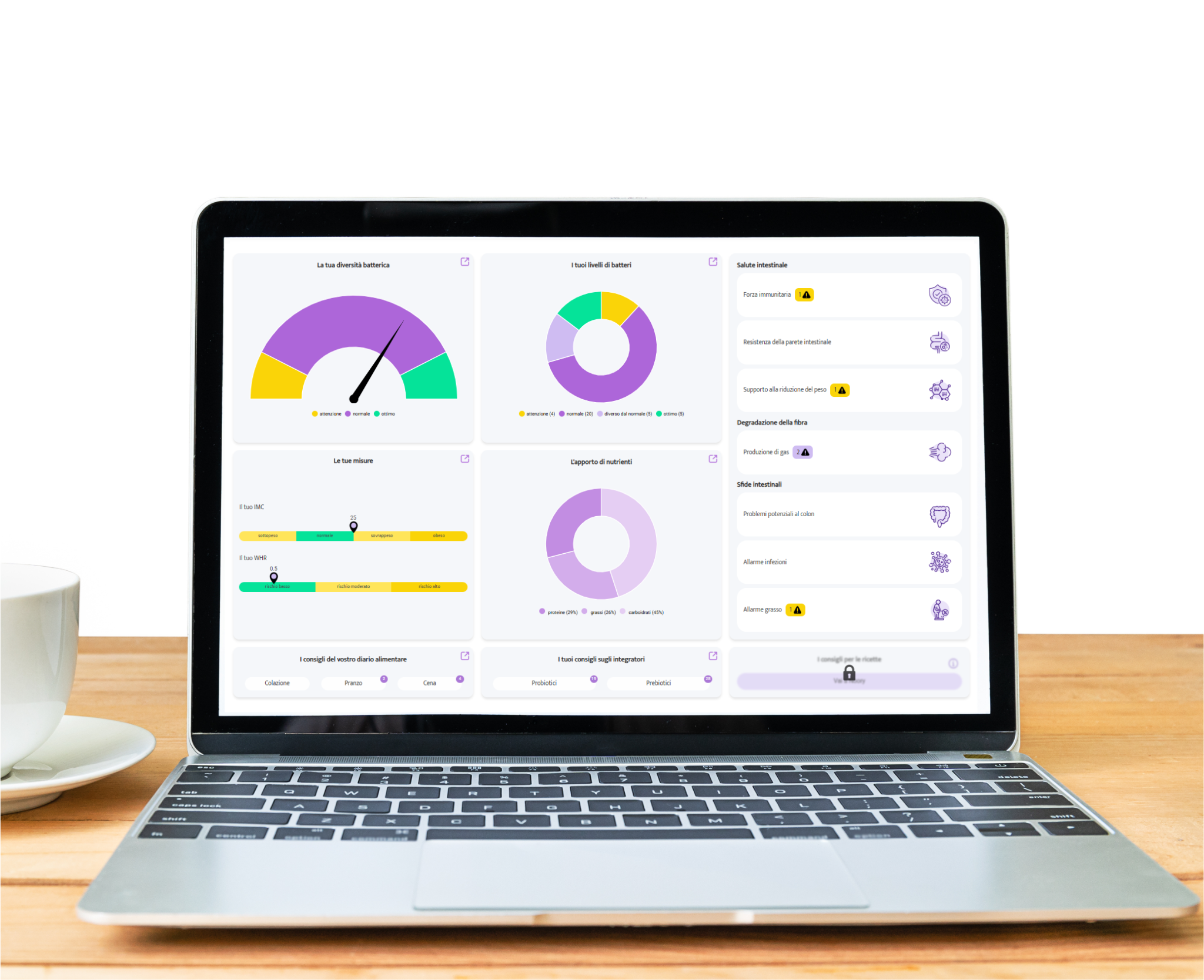 La nostra analisi va oltre la semplice identificazione dei batteri del microbioma intestinale. Offriamo consigli nutrizionali, “da fare e da non fare“, basati sui tuoi risultati specifici. Questo significa che potete iniziare immediatamente a sostenere la tua salute intestinale non appena riceverai i tuoi risultati!